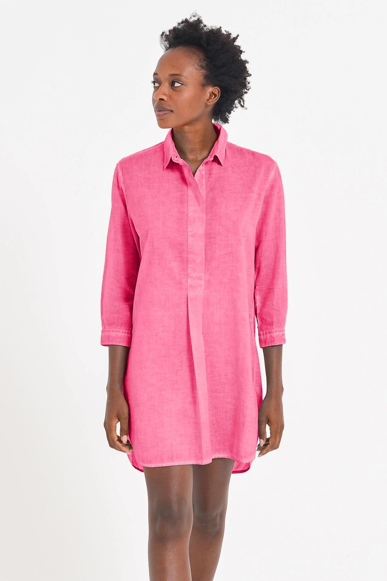 Femme and flowy this Strawberry mini shirtdress in cotton (voil) features a button-front silhouette with 3/4 sleeve and an extremely light touch.