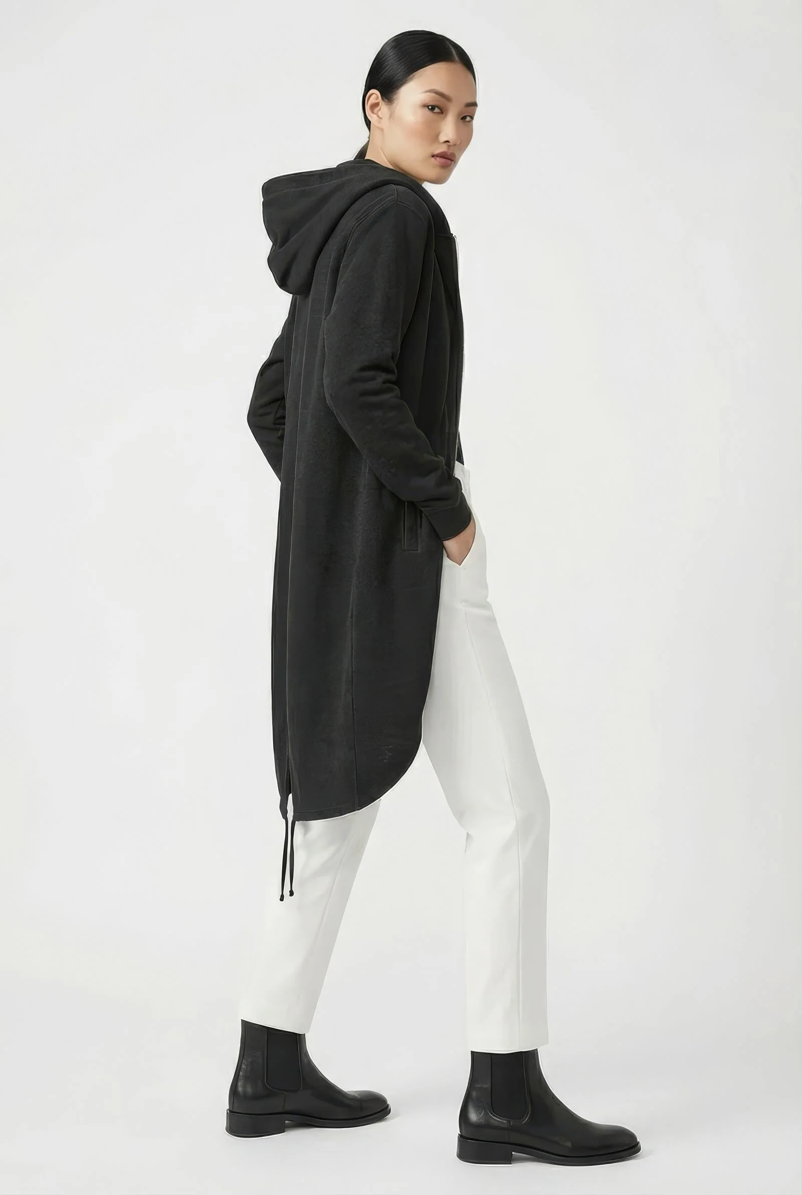 Women's fleece parka in Carbone crafted with plush cotton for ultimate comfort. Designed with a loose fit that ensures ease of movement. Showcases a laid-back aesthetic perfect for casual outings.