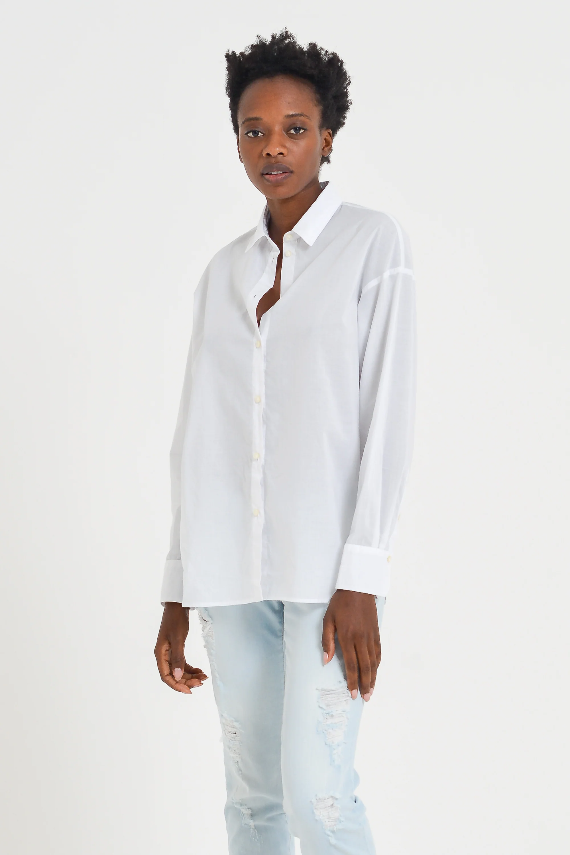 Pretty and puff-sleeved blouse featured in a light cotton voile fabrication with spread collar in a slouchy silhouette.