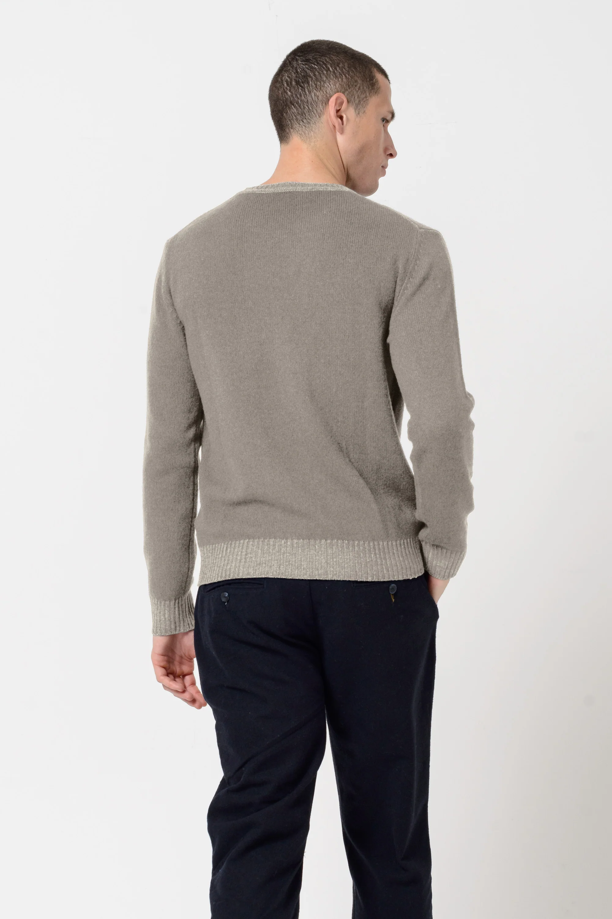 Regular fit sweater made from a cashmere blend. Features a crew neck, long sleeves, and ribbed trims. Colored using the Chroma coloring process for rich color with a hint of brine.