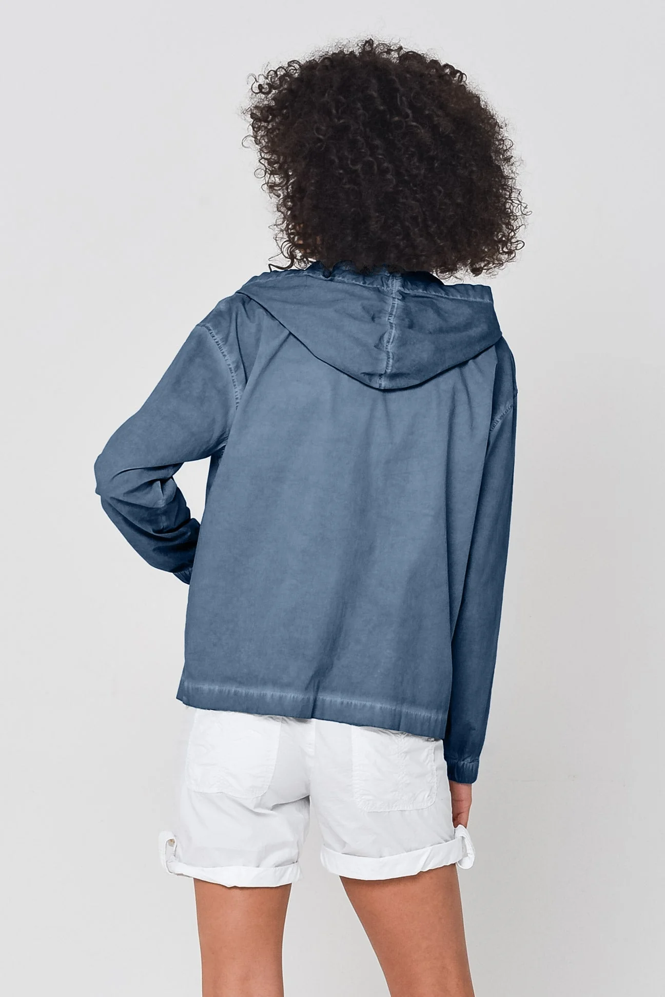 This hooded jacket is crafted from a cotton blend that feels both soft and breathable. It features a lightweight poplin fabric that is still firm enough to be able to layer over jeans or joggers. The long sleeves are perfect for wearing over tees, polos, or even a sweater when it gets chilly. The fit is also quite relaxed and not too constricting, which makes it easy to move around.