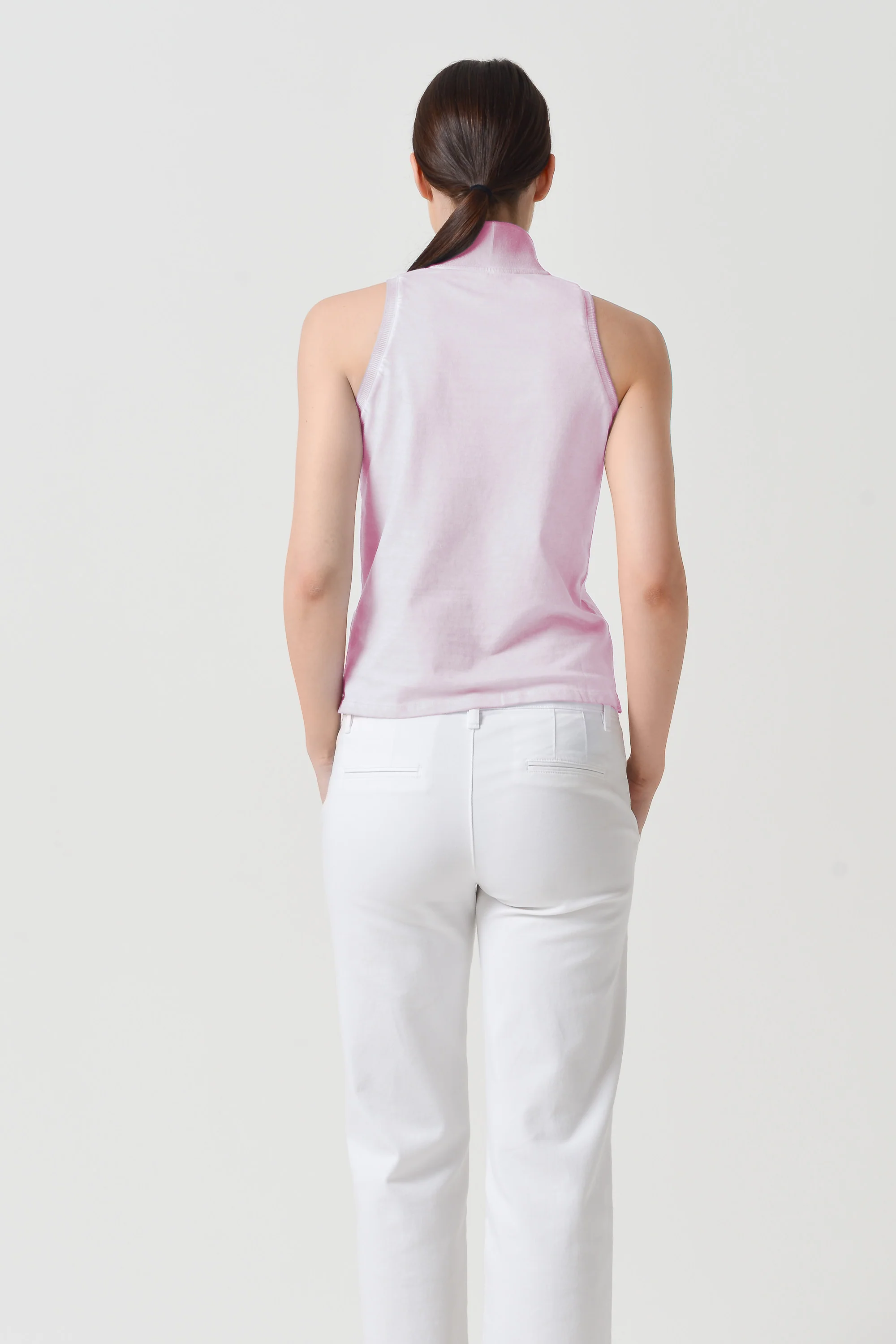 Slim fit sleeveless polo made from piquè cotton with a polo collar. Colored using a rainbow technique for a vibrant, distressed effect, leaving details lightly untouched.