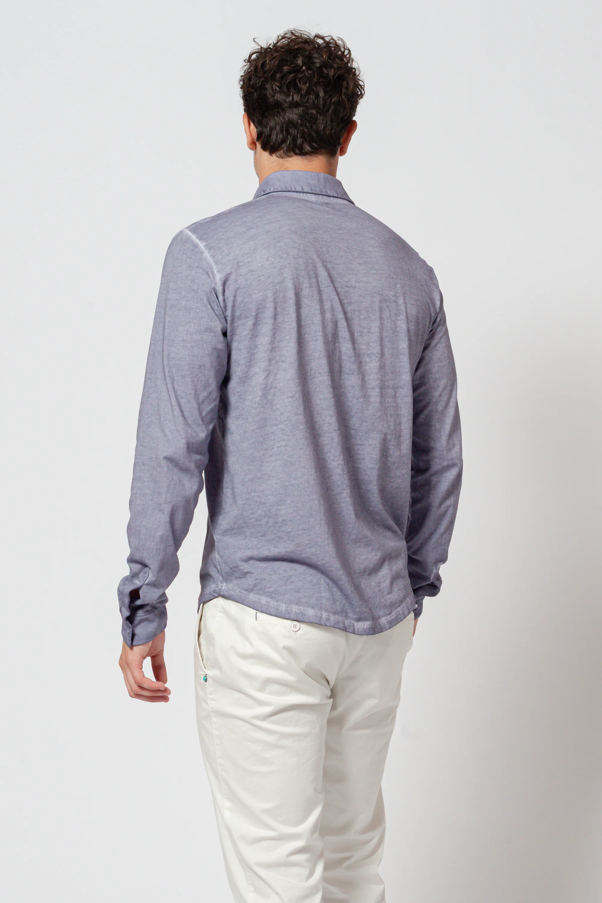 Regular fit shirt made from cotton jersey. Features a spread collar, long sleeves, and a curved hemline. Colored using a rainbow technique with layered pigments for a distressed effect, leaving some details untouched. Made in Italy.