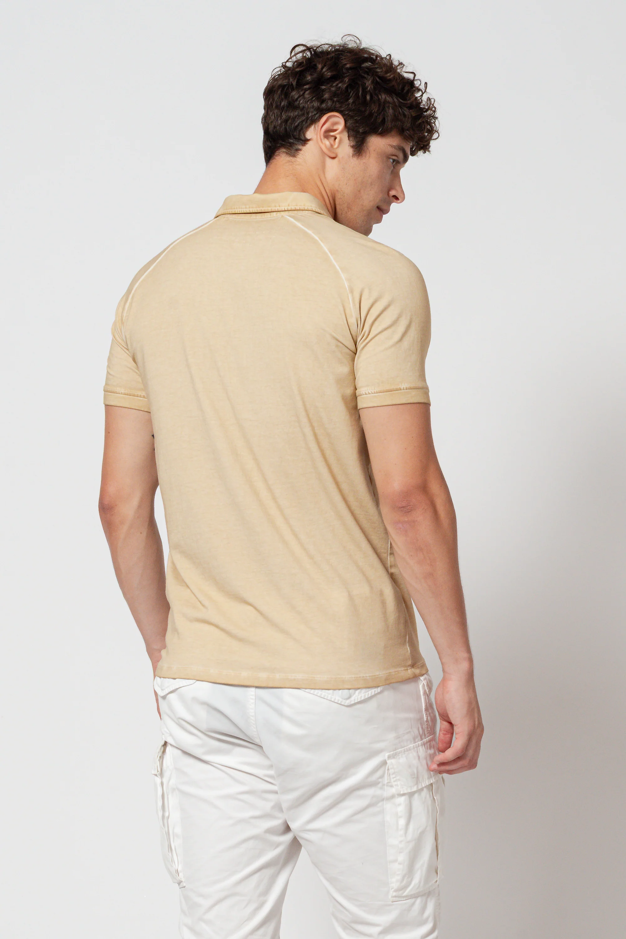 Regular fit polo made from stretchy jersey material. Features a polo collar and short sleeves. Breathable design with a rainbow coloring technique, creating a vibrant, distressed effect while leaving some details untouched.