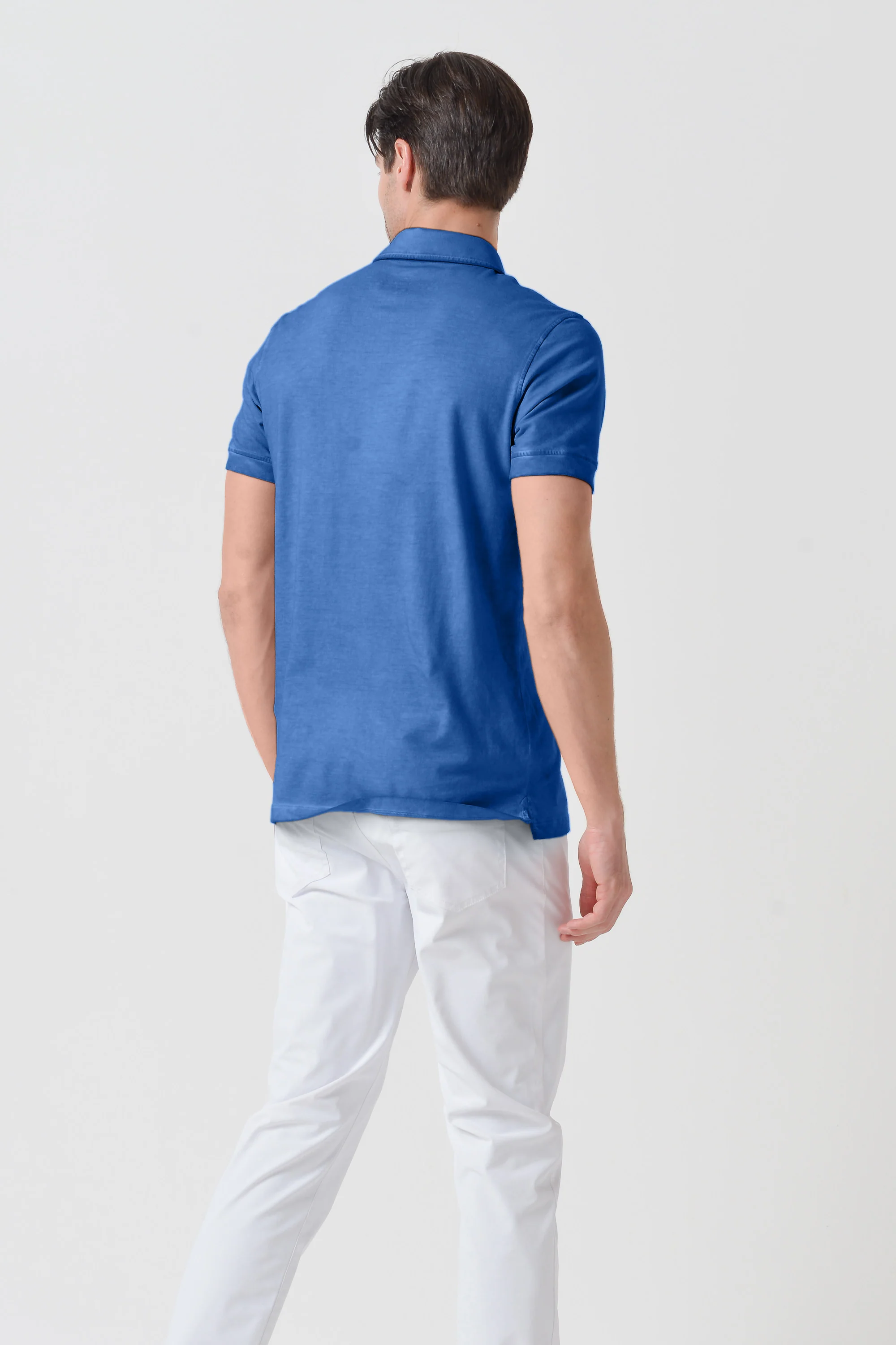 Polo featuring a dress-shirt-like collar. Slim fit design tailored to enhance the silhouette. Short sleeves and a three-button placket. Crafted from soft, breathable fabric for everyday comfort. Ideal for a polished yet relaxed look. Pairs seamlessly with chinos or denim.