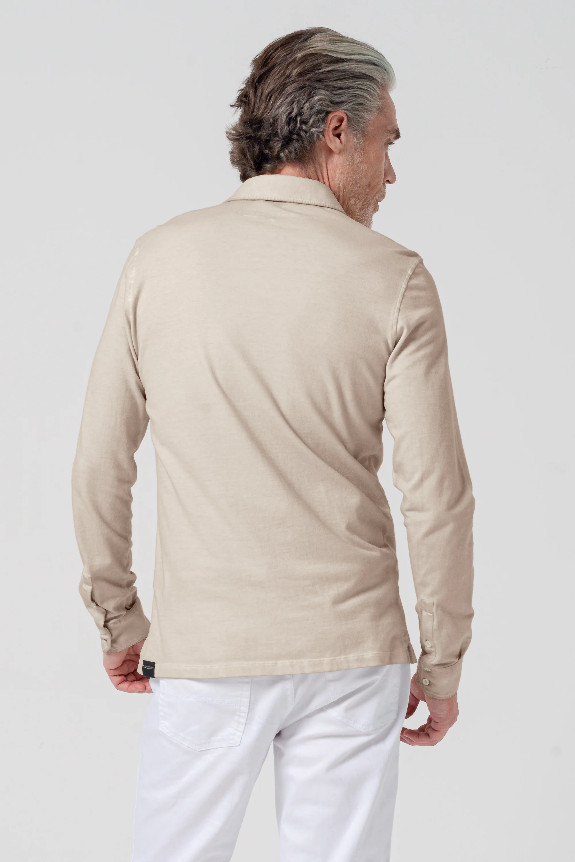 Slim fit shirt made from piqué cotton. Features a shirt collar and long sleeves. Colored using a rainbow technique with layered pigments for a vibrant, distressed effect, leaving some details lightly untouched.