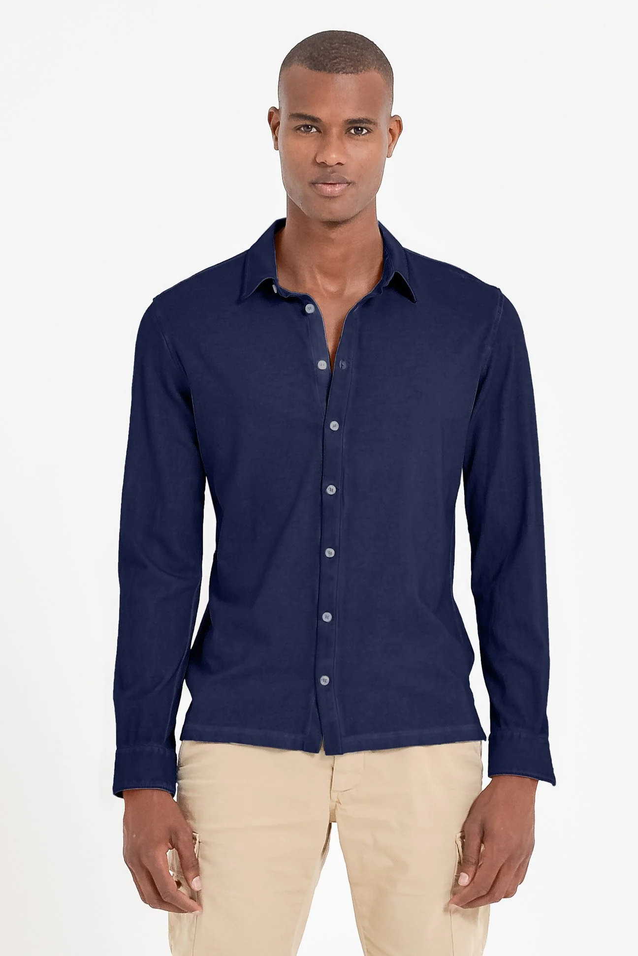This pique shirt has a slim fit, spread collar, and long sleeves. Made with superior materials, this shirt features an ultra-light stretch cotton pique. Wear it as a sports shirt or as a long-sleeved polo.